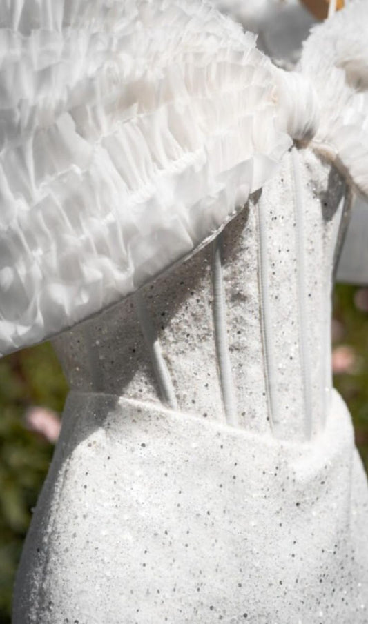 Robe de cocktail courte coupe A avec nœud - Robe de soirée blanche C1496