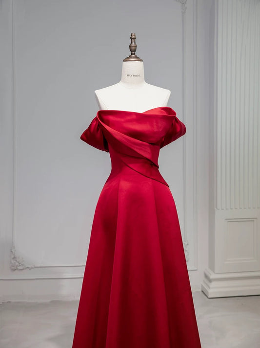 Robe de soirée élégante en satin rouge à épaules dénudées, robe de bal, robe de soirée C3212