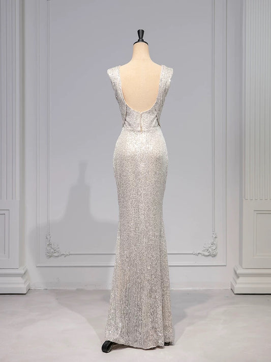 Robe de soirée élégante à paillettes et décolleté en V style sirène C3214