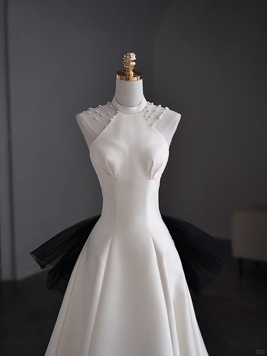 Robe de mariée longue en satin et tulle, coupe licou, dos nu, avec nœud, C4261