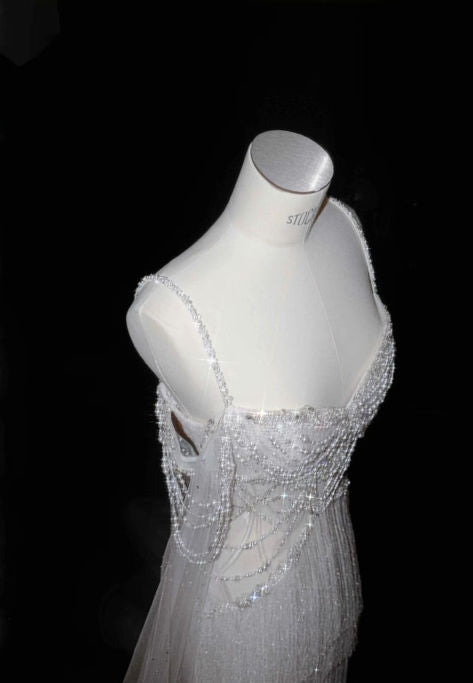Superbe robe de mariée sirène longue en tulle à bretelles spaghetti C4272