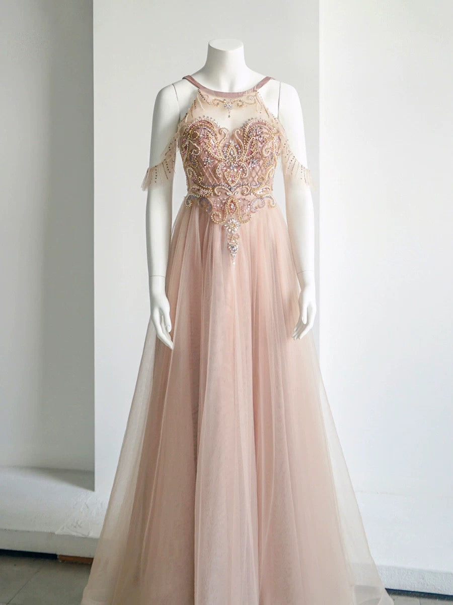 Robe de soirée longue élégante en tulle avec décolleté en V et bijou C3227