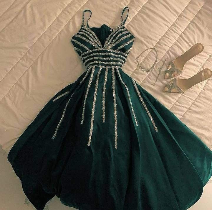 Robe de soirée longue élégante à bretelles spaghetti en ligne A, vert foncé, C3359