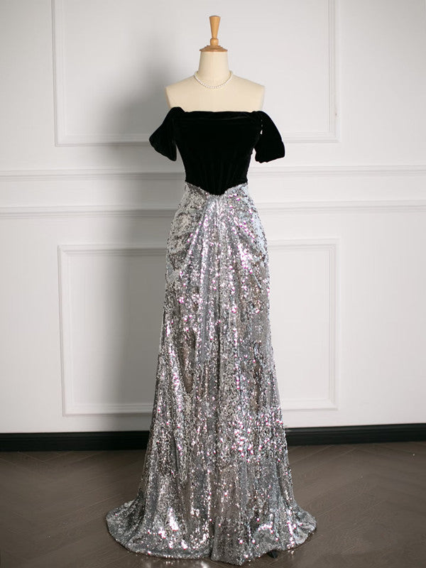 Robe de soirée sexy à volants et épaules dénudées en paillettes C3751