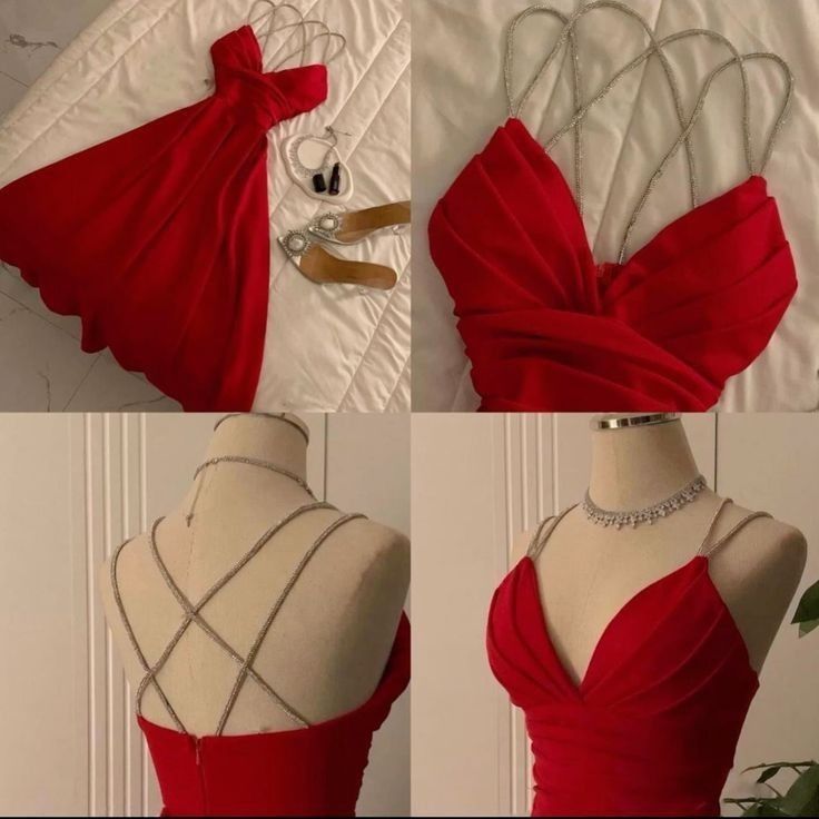 Robe de soirée vintage en satin rouge à bretelles trapèze et perles C3678