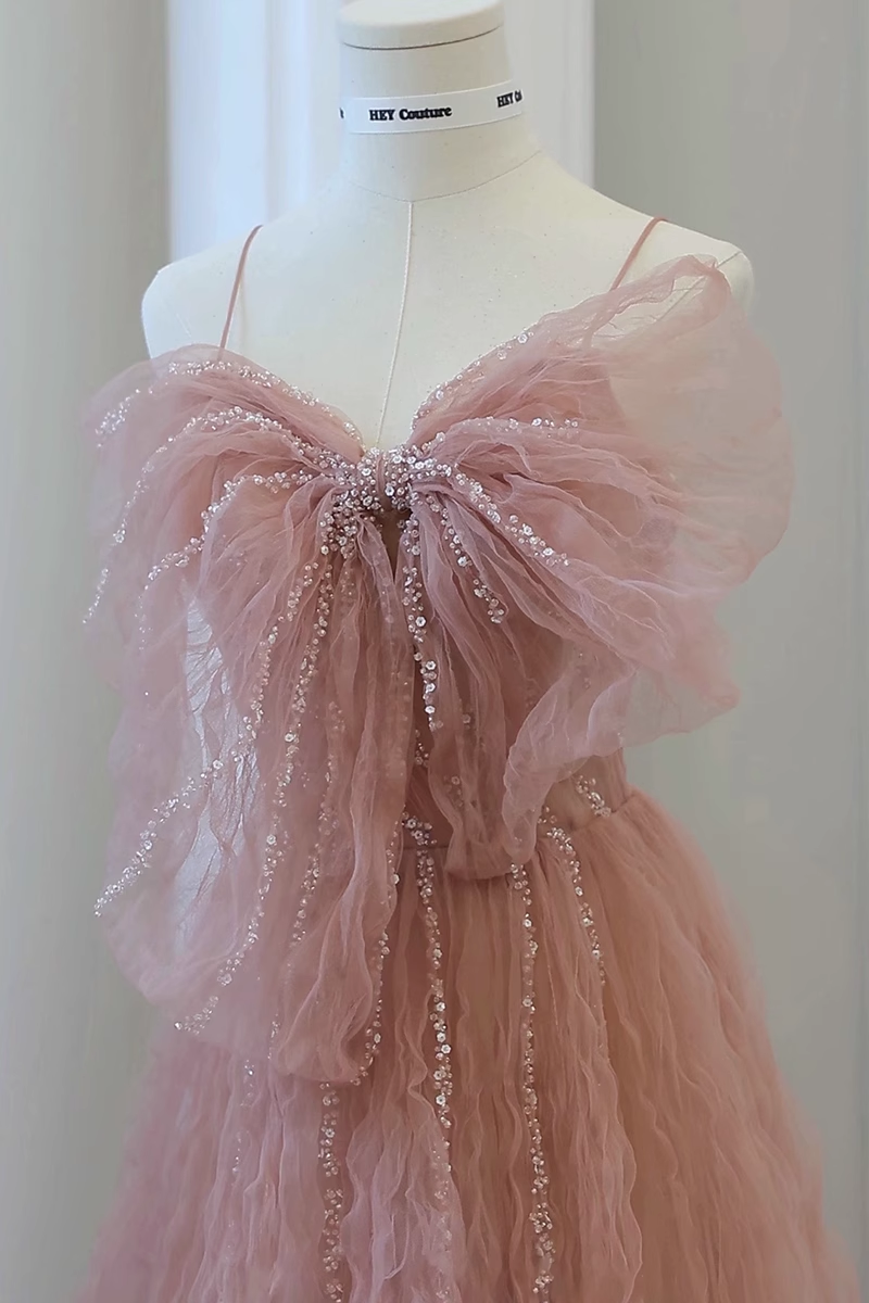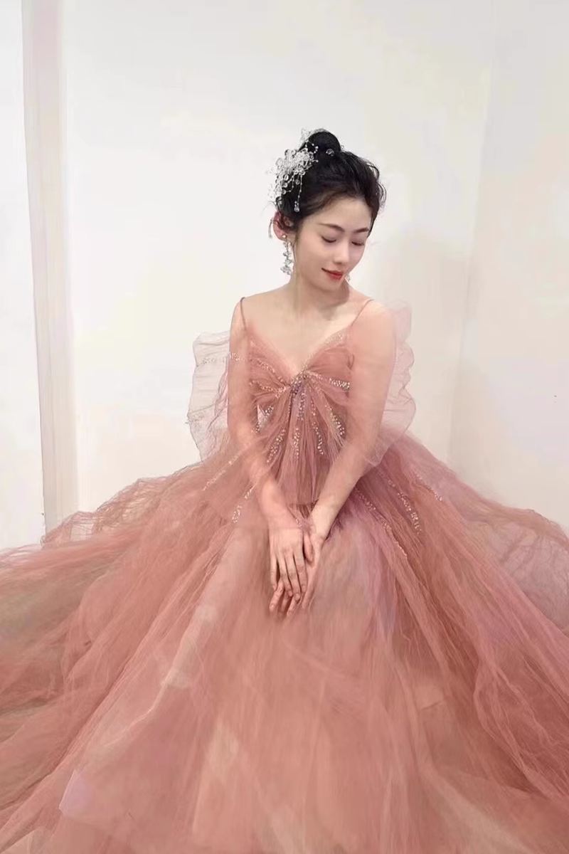 Ball Gown Sleeveless Pink Tulle Prom Dress B022