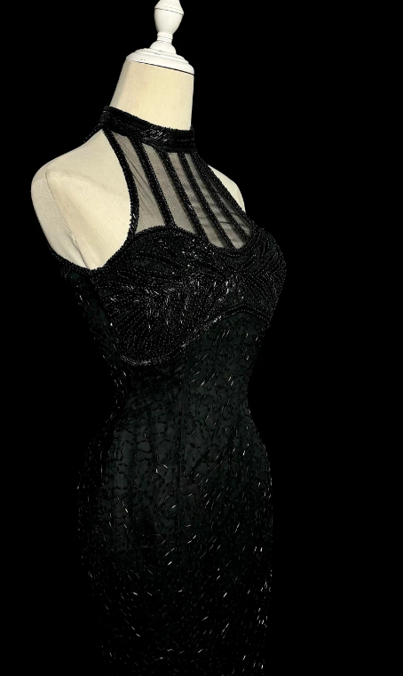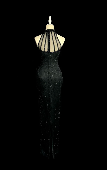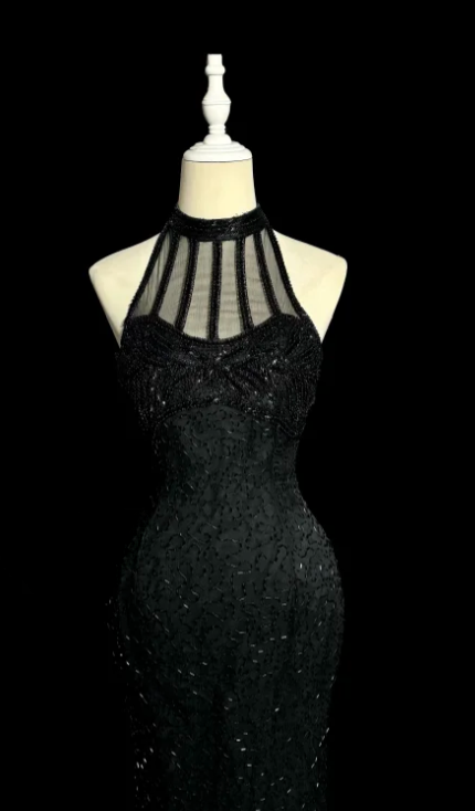 Charming Mermaid Halter Satin Tulle Beaded Without Sleeves Long Prom Dress, Evening Dress C6601