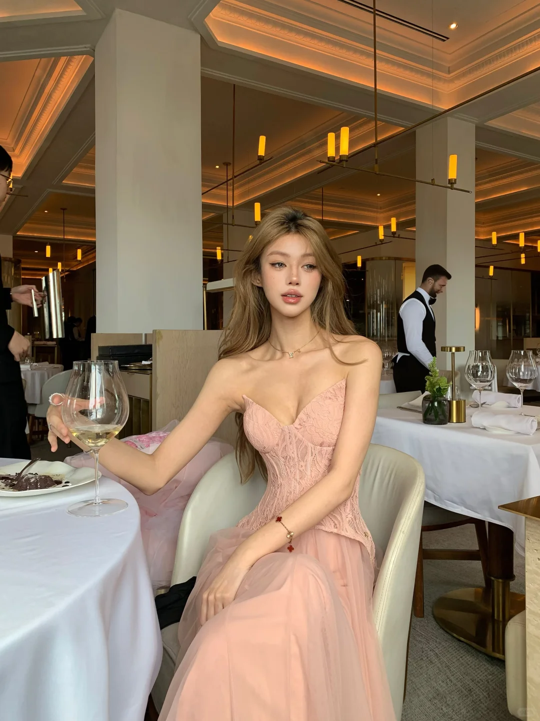 Classy A Line Strapless Tulle Lace Long Prom Dresses Formal Dress C4781