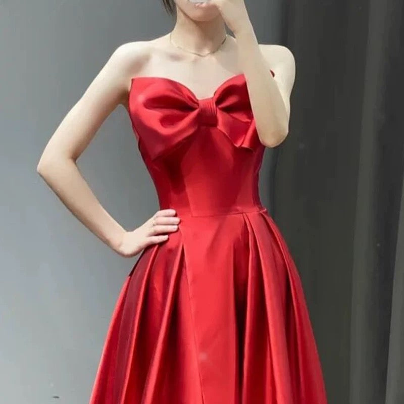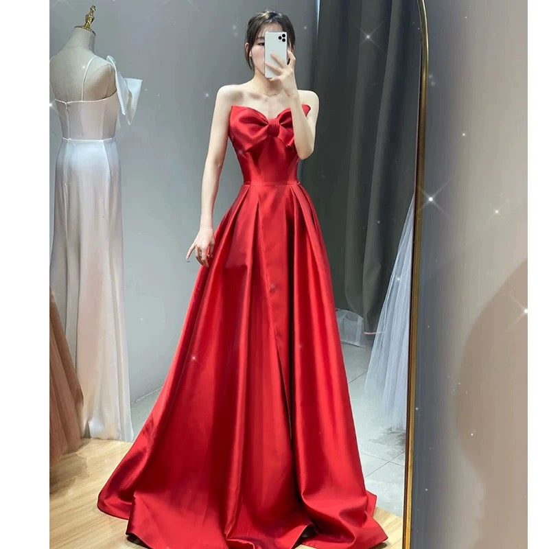 Elegant A line Sweetheart Red Satin Long Prom Dress Evening Dresses C3272