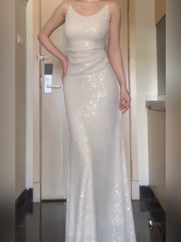 Gorgeous Mermaid Spaghetti Straps Sequin Evening Dress Prom Dresses Birthday Outfits C3623