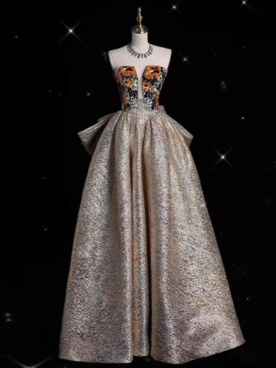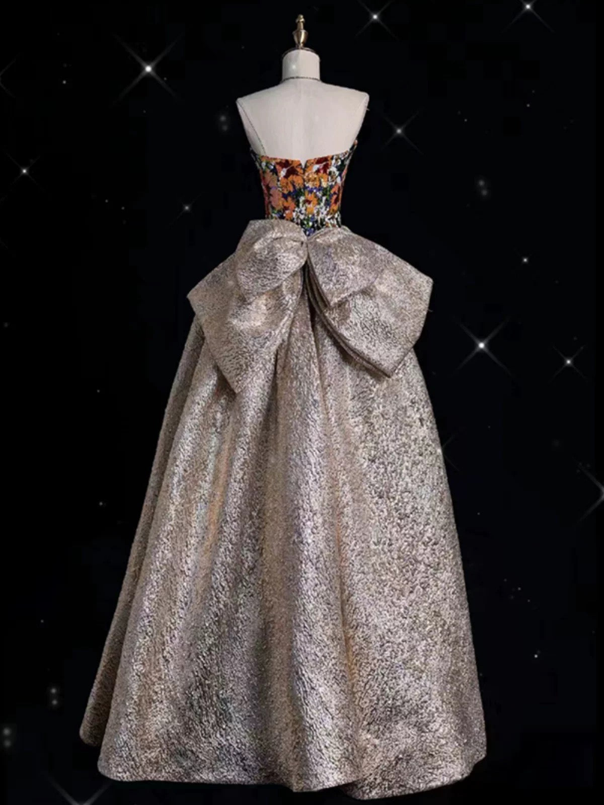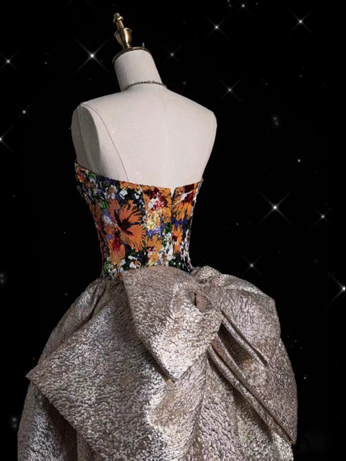 Pretty Ball Gown Strapless Floral Satin Long Prom Dress Evening Dresses With Bowknot CC3253