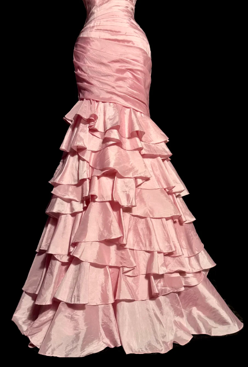 Pretty Pink Mermaid Sweetheart Tiered Satin Beaded Without Sleeves Long Prom Dress, Evening Dress C6599
