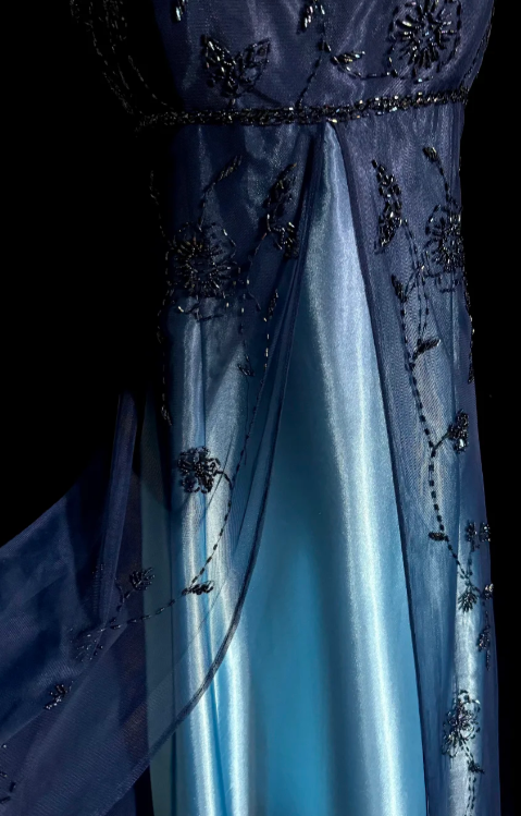 Retro Gradient A Line Spaghetti Straps Satin Tulle Beaded Without Sleeves Long Prom Dress, Evening Dress C6648