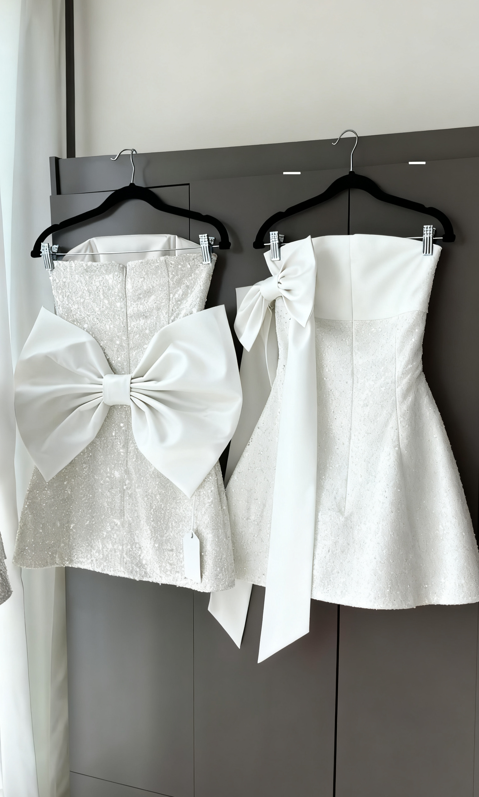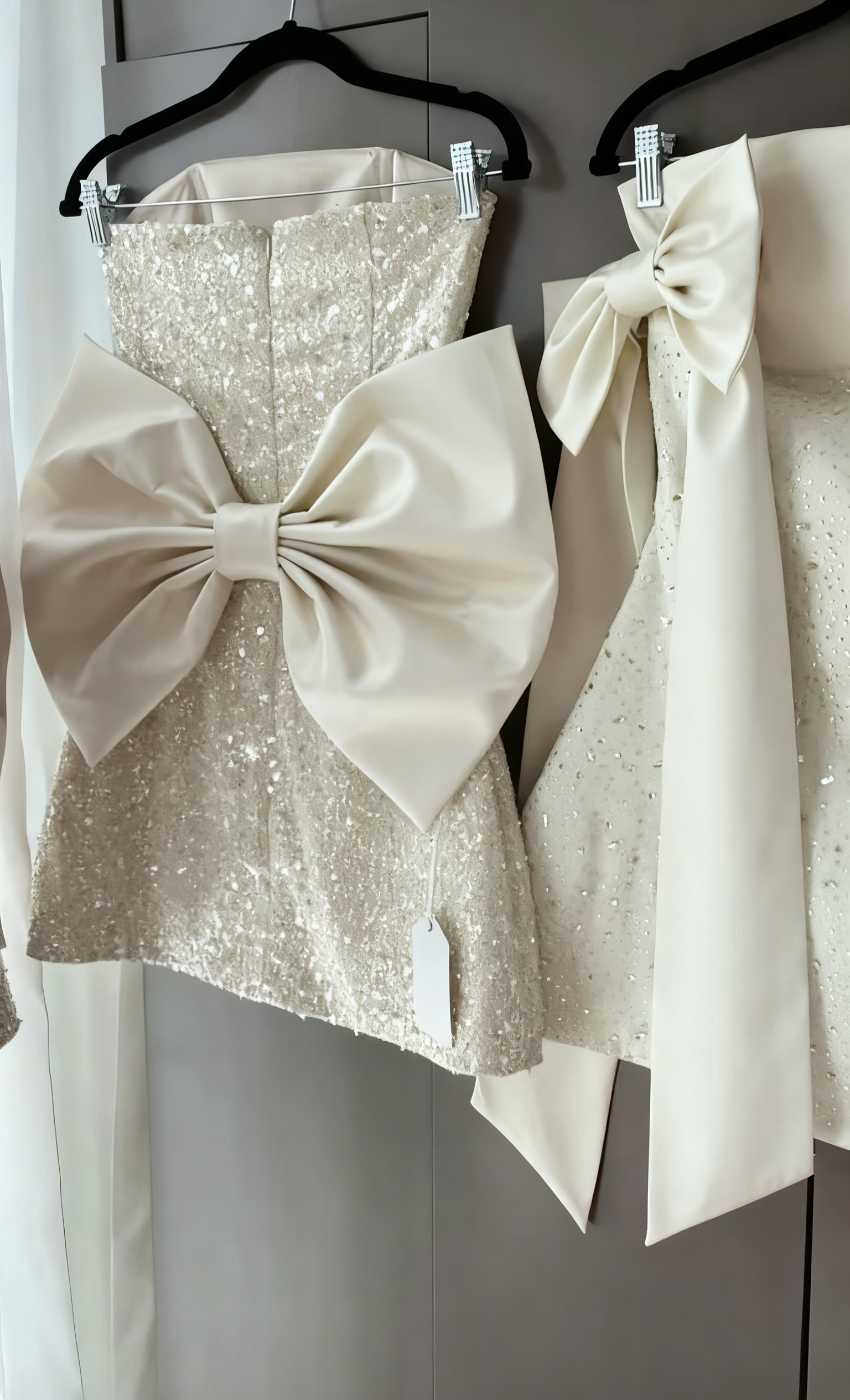 Sparkly A Line Strapless Satin Sequin Backless With Bow Short Homecoming Dress 19th Birthday Outfits C4893