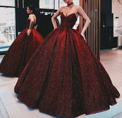 Vintage Ball Gown Strapless Burgundy Sequin Long Length Prom Dresses Birthday Outfits C3562