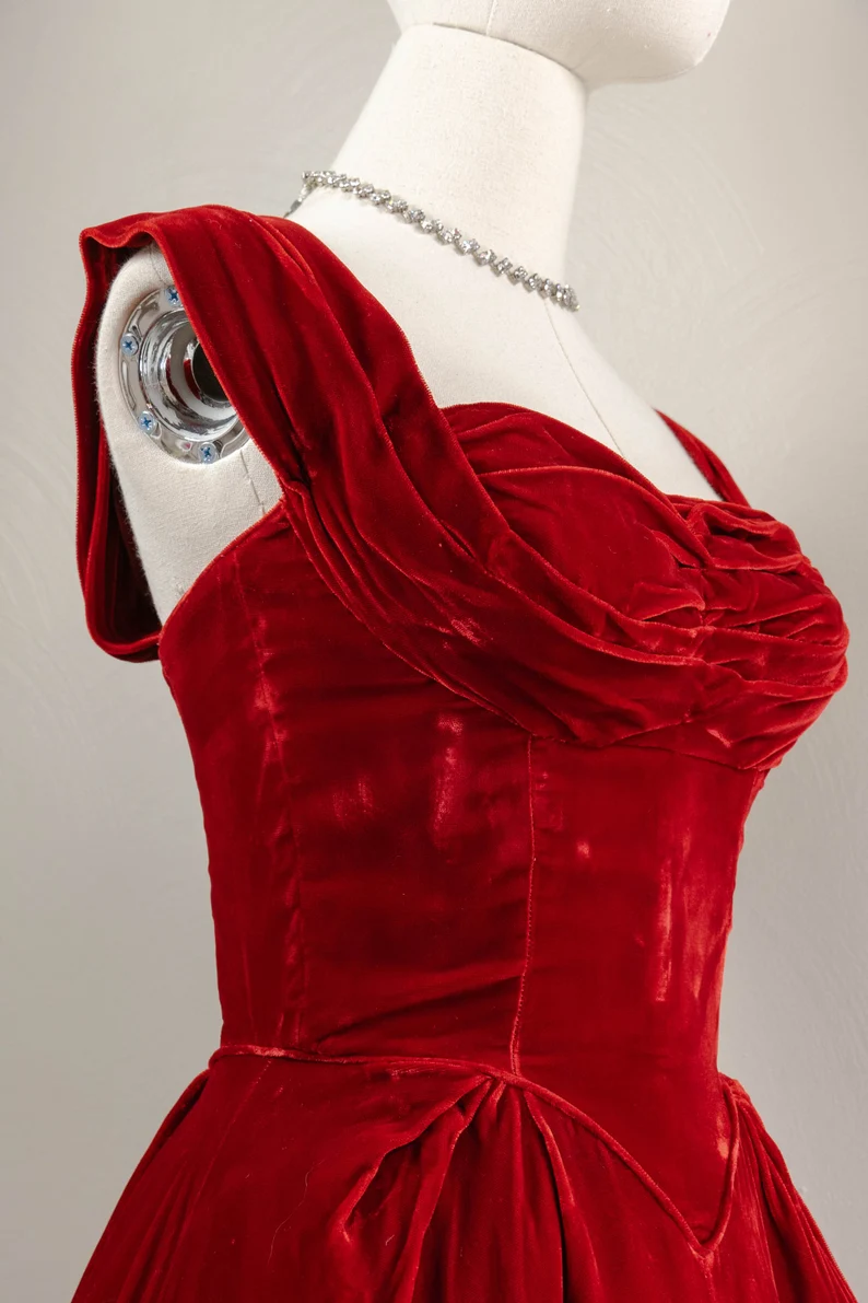 Vintage Ball Gown Sweetheart Red Velvet Prom Dresses Birthday Outfits C3571