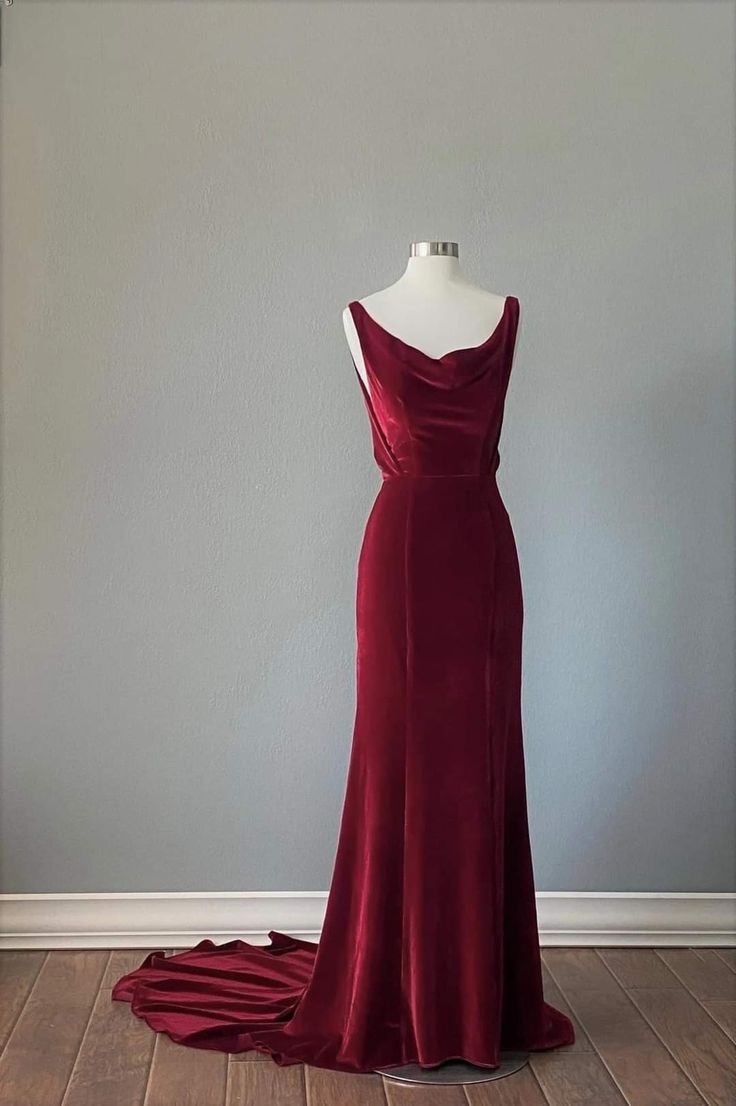 Vintage Sheath Straps Burgundy Velvet Long Ruffles Prom Dresses Birthday Outfits C3566